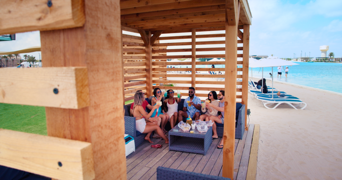 The public portion of the beach, Lagoonfest Texas, includes multiple beaches, an inflatable obstacle course, a shuttle boat, and beach-style amenities such as umbrellas and chairs. Additionally, for a nominal fee, visitors can enjoy the all-new Flowrider, which opened in March 2024, as well as bumper boats, food and drinks, cabanas, floating cabanas, and more. Concerts, festivals, and events are also held most weekends.